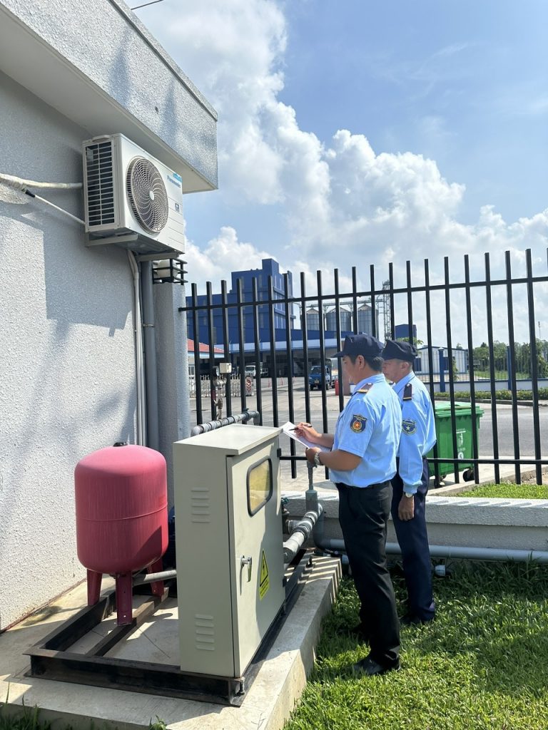 Nhân viên bảo vệ thực hiện tuần tra giám sát thiết bị PCCC.